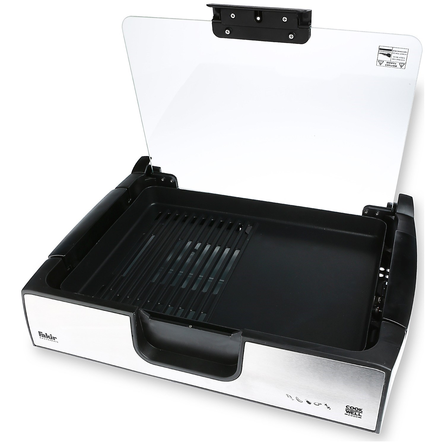 Fakir Cookwell 2000, dumansız ızgara yapmak isteyenlere önereceğimiz bir elektrikli ızgara. Fakir elektrikli ızgara makinesi, balık, et, köfte, tavuk, mantar veya sebze gibi farklı besinleri ızgara tadında kızartarak lezzetli öğünler hazırlamanıza yardımcı oluyor. Farklı ısı kademeleri, kolay kullanımı, şık tasarımı ve özel pişirme plakalarıyla en iyi ızgara deneyimi sunuyor. Evde, balkonda, bahçede veya açık alanlarda kullanıma uygun olan elektrikli ızgara, hızlı ısınma ve pişirme özelliklerinin yanında kolay temizlenme özelliğiyle beğeni kazanıyor. Kömür, duman ve ateş derdi olmadan piknik alanlarında da kullanabileceğiniz harika bir dumansız elektrikli ızgara. - Güç: 2000 watt