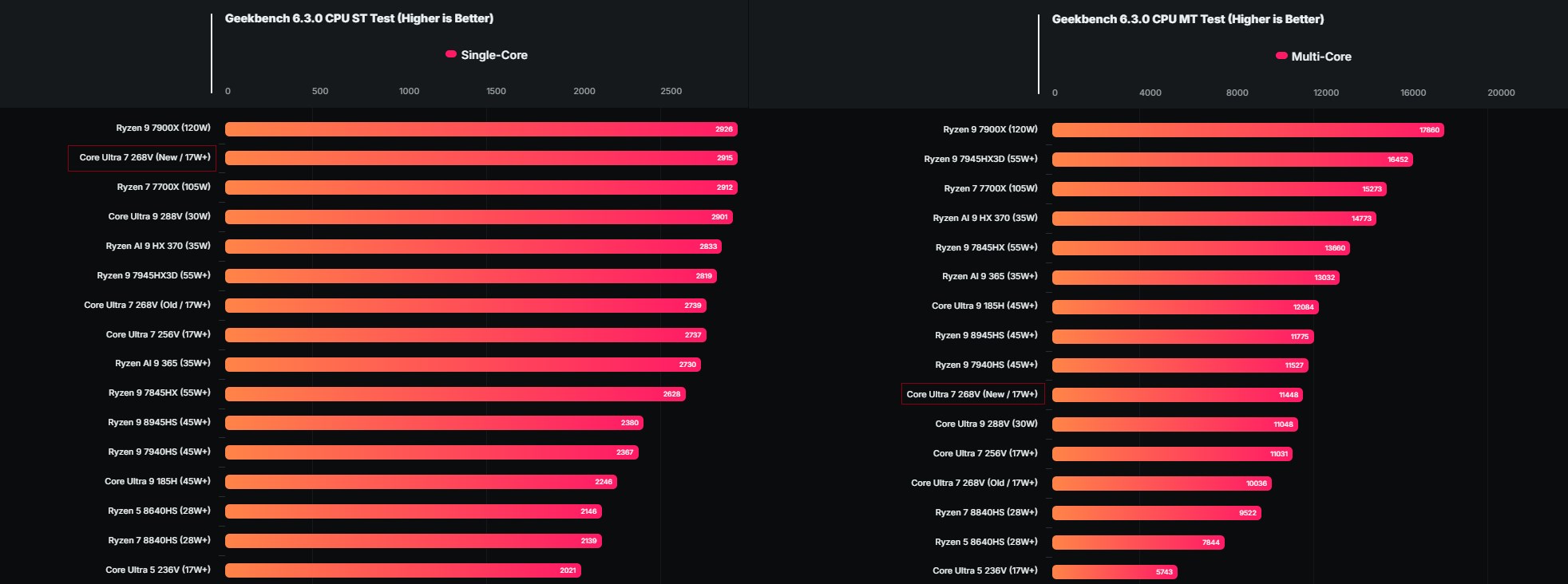 Başlamadan önce Intel Core Ultra 7 268V, “Core Ultra 200V” ailesinin en hızlı ikinci çipi konumunda ve 8 çekirdekli konfigürasyonda (4P+4E), 8 iş parçacığı, 12 MB L3 önbellek, 3,30 GHz-5,0 GHz’e kadar saat hızı ve 32 GB paket içi LPDDR5X-8533 bellek desteğiyle geliyor. Ayrıca yeni işlemci, 8 adede kadar Xe2 (2,0GHz) çekirdeğine sahip bir Arc 140V iGPU ile donatılacak ve 17W PL1 (Power Limit) ve 30W PL2 ile derecelendirilmiş.