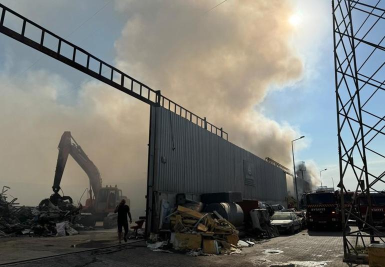 Yoğun dumanın yükseldiği yangını söndürme çalışmaları sürüyor.
