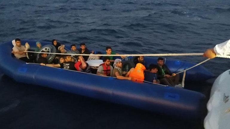 Sahil Güvenlik Komutanlığı tarafından paylaşılan görüntülerde motoru sökülmüş, lastik bot içindeki kaçak göçmenlerin dalgalar arasında denizin ortasında mahsur kaldığı görülüyor.
