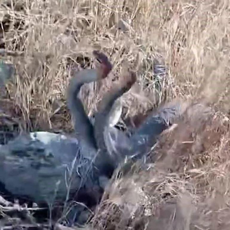 Elazığ’da havaların iyice ısınmasıyla birlikte yılanlar daha fazla görülmeye başlandı. Baskil ilçesine bağlı Hacıhüseyinler köyünde yaklaşık 2 metre uzunluğundaki iki yılanın çiftleşme dansını gören bir kişi telefonuna sarılıp o anları kaydetti. Vatandaş panikle yılanları çekerken, hayvanlar bir süre sonra gözden kayboldu.
