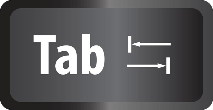 Microsoft Word gibi programlarda, tab tuşuna basmak imleci sabit bir mesafede sağa hareket ettirir. Buna tab durağı da denir. Bu, daktilolardaki tuşun orijinal işleviyle aynıdır. İmleç bir kelimeden önceyse, kelimeyi tab mesafesi sağa itersiniz. Bu işlev, tek bir tuşa basarak eşit mesafeler elde etmek, sayfanın sol tarafındaki kenar boşluğunu artırmak, metni sütunlara düzenlemek veya metin bloklarını veya listeleri bölmek için boşluklar kullanmak adına kullanışlıdır. Bazı programlar alanı boşluklarla doldurur, diğerleri metin biçimlendirmesini görünür kılmak için tab işareti veya kendi karakterlerini ekler.