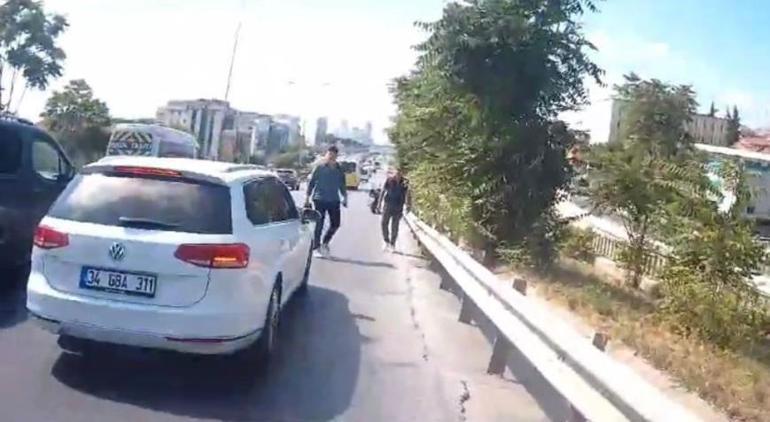 Motosiklet sürücünün kask kamerasının kayıtta olup olmadığını soran şahıs, “O görüntüleri bir yerde görürsem seni bulurum” diyerek tehditler savurdu. Çevredeki sürücülerin korna sesleri sonrası şahıs yoluna devam etti.
