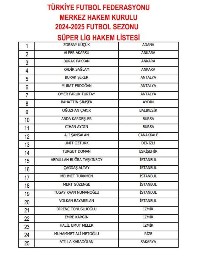 Süper Lig’de görev alacak hakemler açıklandı. Abdulkadir Bitigen listede yer almadı.