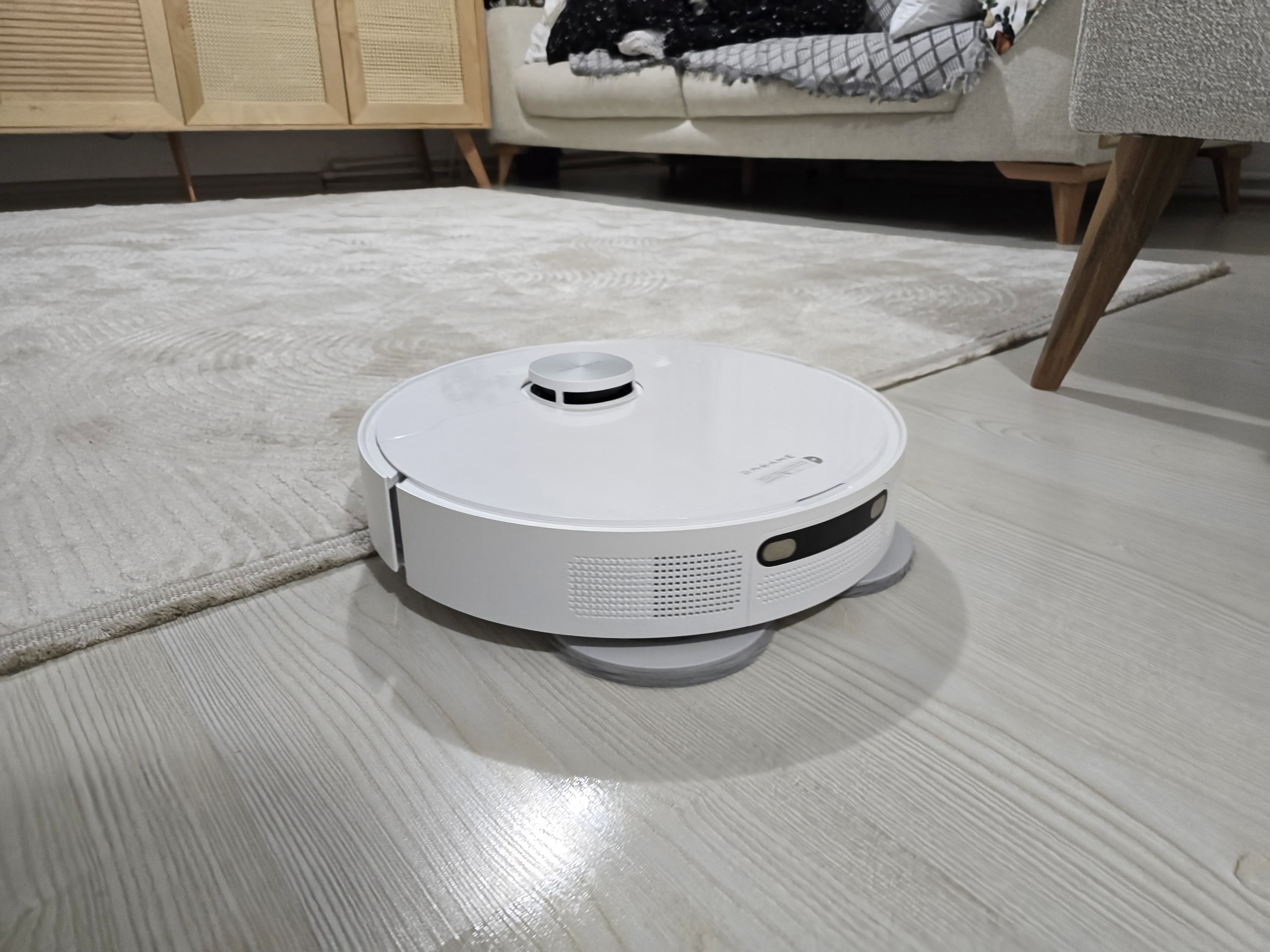 Halı algıladığında paspası 7 mm yüksekliğe kadar otomatik kaldırma özelliğine sahip. İnce halınız varsa 7 mm yeterli oluyor ancak Türkiye’de genellikle kalın halılar kullanıldığı için paspasların halıya kısmen temas edeceğini belirtmeliyim. Paspas pedinin ne kadar ıslak şekilde temizlik yapacağını seçebilirsiniz. “Biraz kuru”, “Nemli” ve “Islak” şeklinde üç ayrı seçenek mevcut. “Nemli” seçeneğiyle temizlik yapılırken orta kalınlıklardaki halılarda gezinirken temizlik açısından sorun yaşatmıyor. Ayrıca mobil uygulamada “Halıdan kaçınma” ve “Halıya uyarla” şeklinde iki ayrı seçenek bulunuyor. Halıdan kaçınma seçeneğini seçerek halıların üzerine çıkmasını engelleyebilirsiniz.