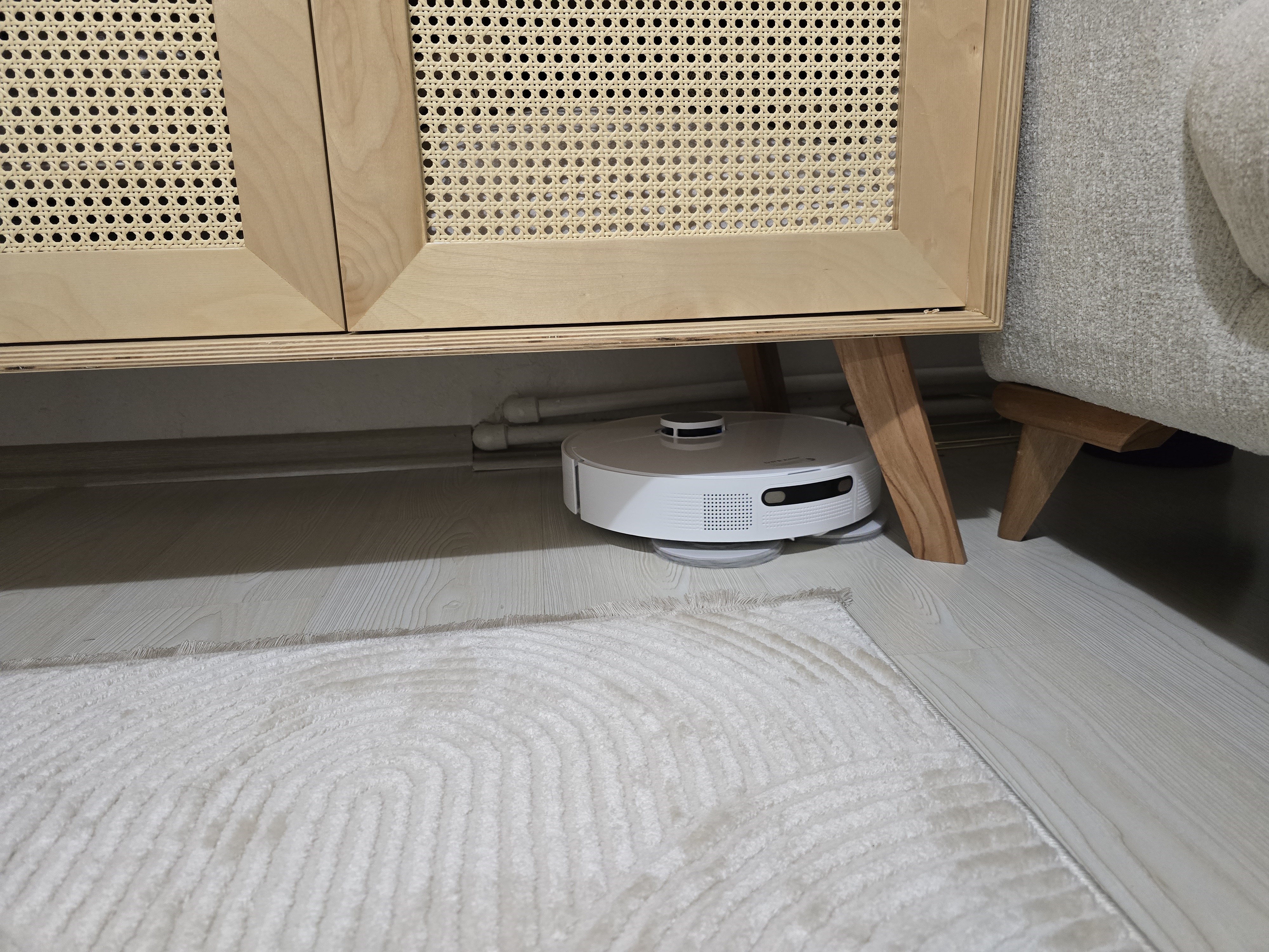 Mobil uygulamadaki paspas ayarlarında “Kenarların ve köşelerin daha geniş biçimde kapsanması” şeklinde bir özellik mevcut. Bu özellik aktifken köşelere geldiğinde süpürge kendini köeşeye doğru ittirerek paspasların daha uzağa erişmesini sağlıyor. Bu sayede köşelerde ve mobilya ayaklarının etrafında etkili şekilde paspas yapıyor. Dreame’nin ürün sayfasında bu özelliğe vurgu yapılmasa da bu özelliğin oldukça önemli bir avantaj sunduğunu gözlemledim.