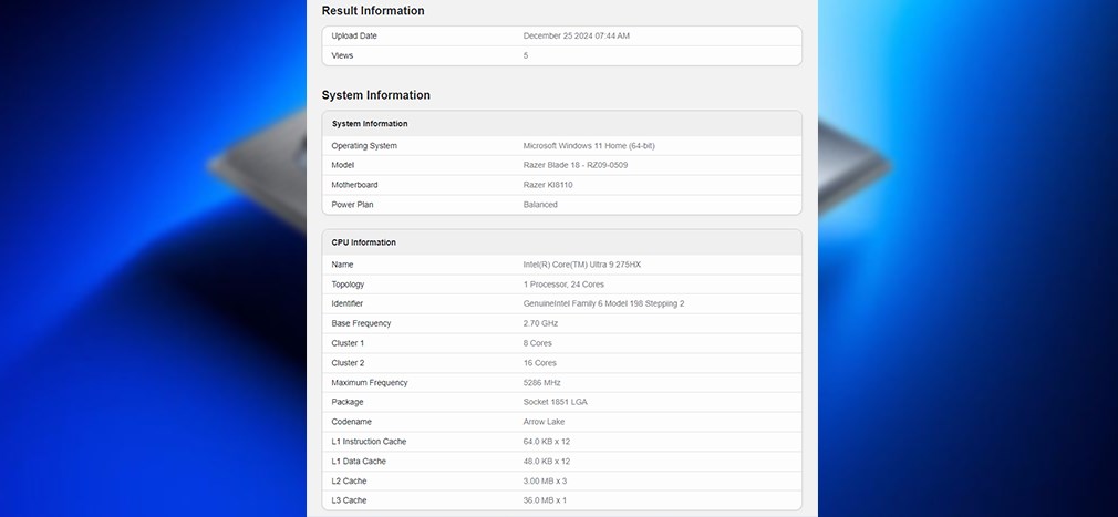 Intel’in merakla beklenen Arrow Lake-HX serisi dizüstü işlemciler yavaş yavaş netleşmeye başlıyor. Özellikle oyuncular ve performans tutkunları için geliştirilen bu yeni işlemci ailesi, Core Ultra 9 285HX, 275HX, Core Ultra 7 265HX, 255HX, Core Ultra 5 245HX ve 235HX modellerinden oluşacak. Şimdi bunlar arasından Core Ultra 9 275HX kıyaslama platformlarından görünmeye başladı.