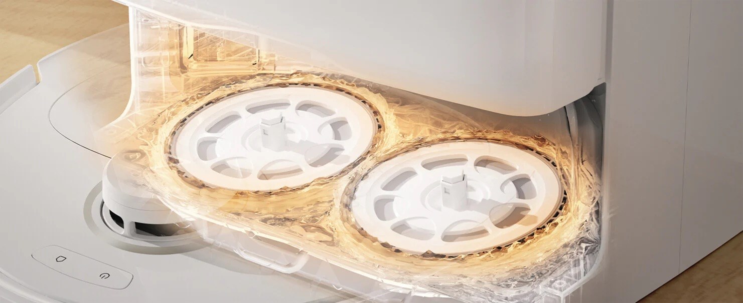 Roborock QRevo Pro, 7000 Pa HyperForce emiş gücüyle üstün temizlik performansı sergiliyor. İki adet döner yapıdaki paspasları dakikada 200 defa dönerek paspas yapıyor