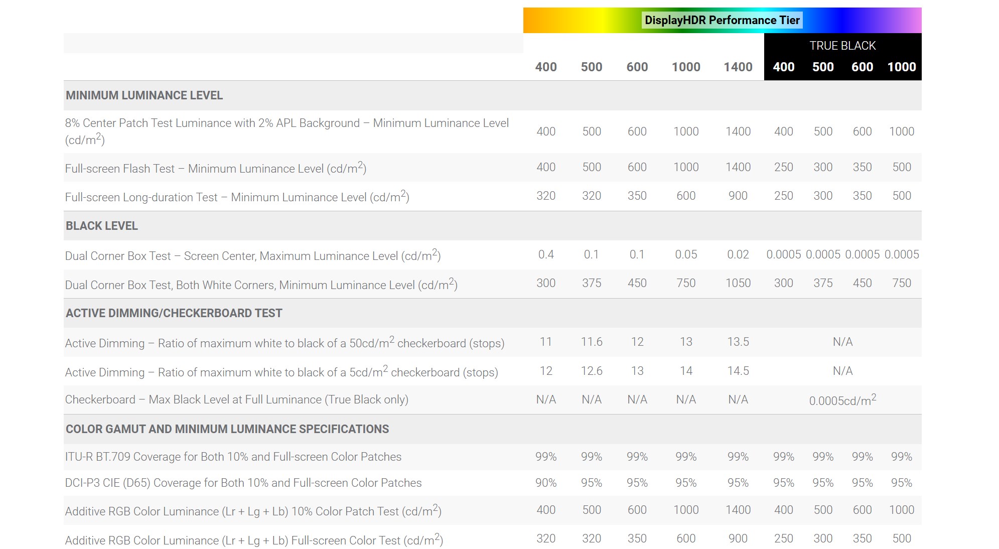 VESA’nın DisplayHDR True Black 1000 standardı, OLED ekranlarda 1000 nit tepe parlaklığına ulaşmayı mümkün kılıyor. Profesyonel uygulamaları desteklemek için tasarlanan bu sertifikasyon, HDR için daha önce yalnızca 600 nit ile sınırlıydı. Dolayısıyla son güncelleme, OLED monitörler için daha derin siyah seviyelerine olanak tanıyor.
