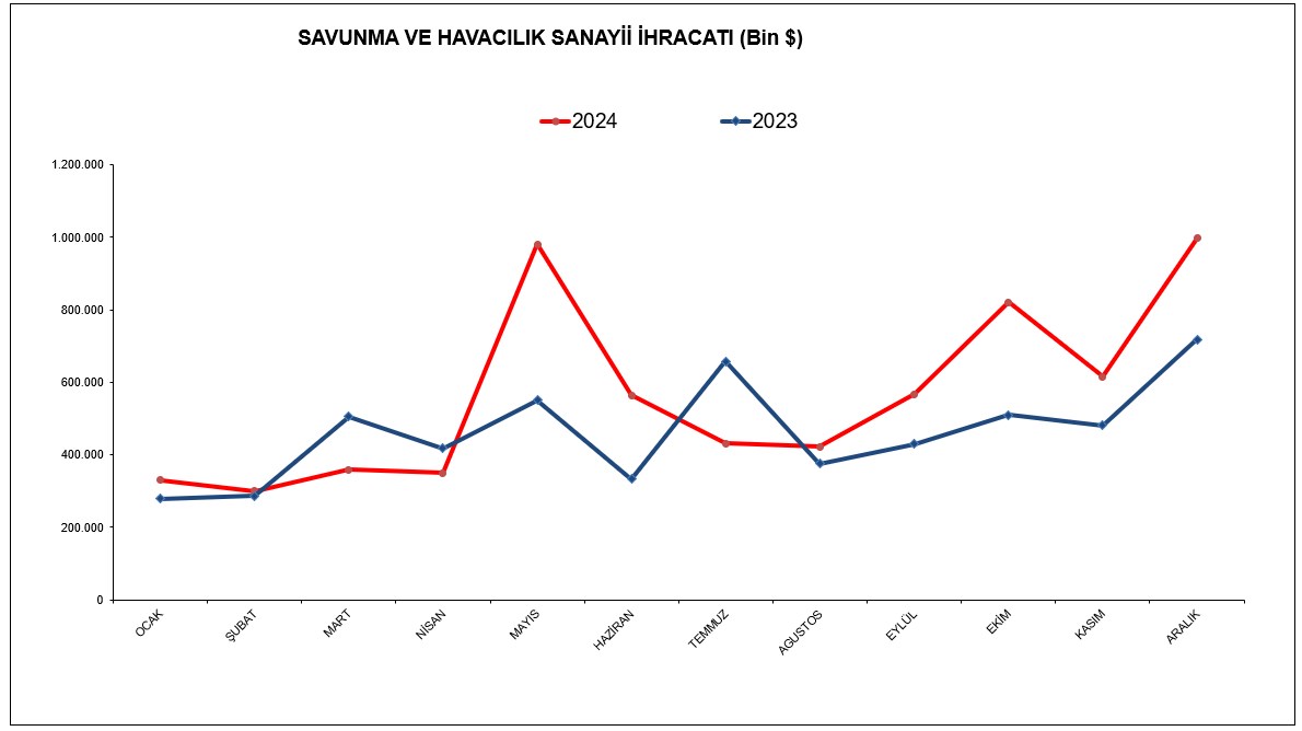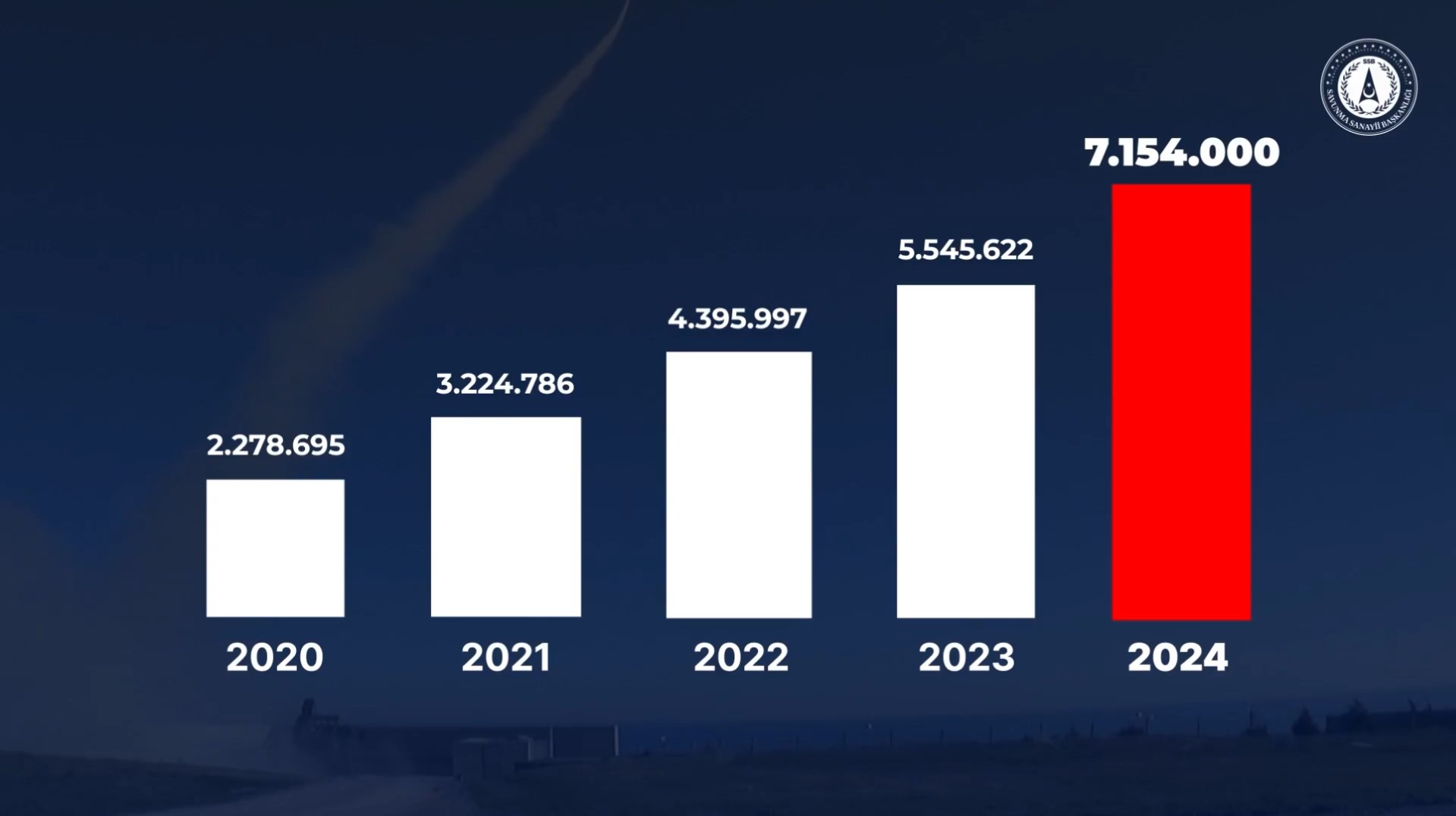Türkiye İhracatçılar Meclisi raporuna göre ise Türk savunma ve havacılık sanayisi 2024 yılında yüzde 22 artışla 6,734 milyar dolar ihracat gerçekleştirdi. İki sayı arasındaki farkın NATO ve hizmet ihracatlarından kaynaklandığı düşünülüyor. Her iki rakam da 2024 için belirlenen 6,5 milyar dolarlık ihracat hedefini aşıyor.