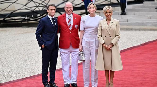 Paris 2024 Olimpiyat Oyunları’nın açılış töreni öncesinde devlet ve hükümet yetkilileri için resepsiyon düzenlendi. Elysee Sarayı’nda düzenlenen resepsiyona katılan Monako Prensi II. Albert ve eşi Prenses Charlene’i Fransa Cumhurbaşkanı Emmanuel Macron ile eşi Brigitte Macron karşıladı.
