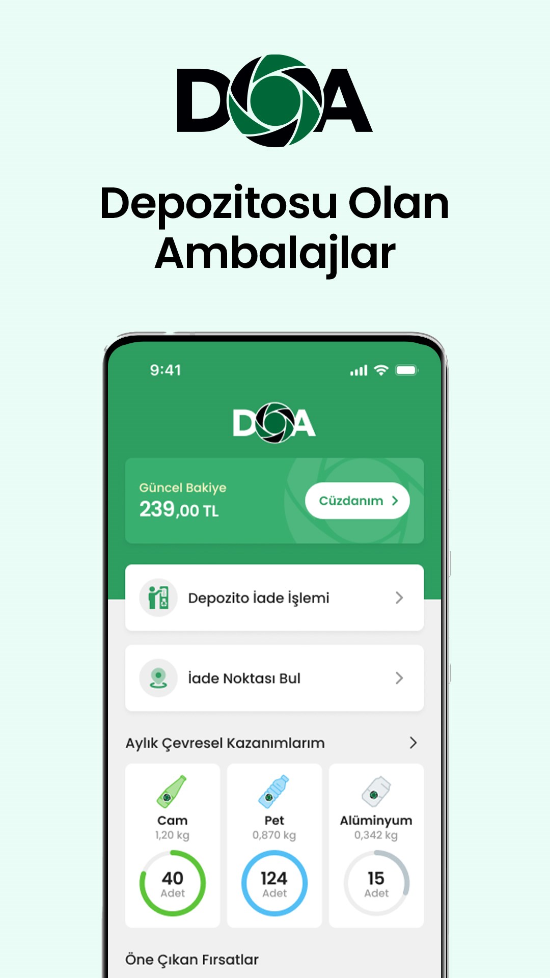 Depozitolu şişelerin ve ambalajların üretimi başladı. Bugüne kadar 20 milyar adedin üzerinde DOA logolu içecek şişesi üretildi. Depozitolu ürünlerin toplanması ve iade edenlere ücret ödenmesi için DOA makinelerinin kurulumu ve Depozito Yönetim Sistemi’nin kullanıma sunulması bekleniyor.