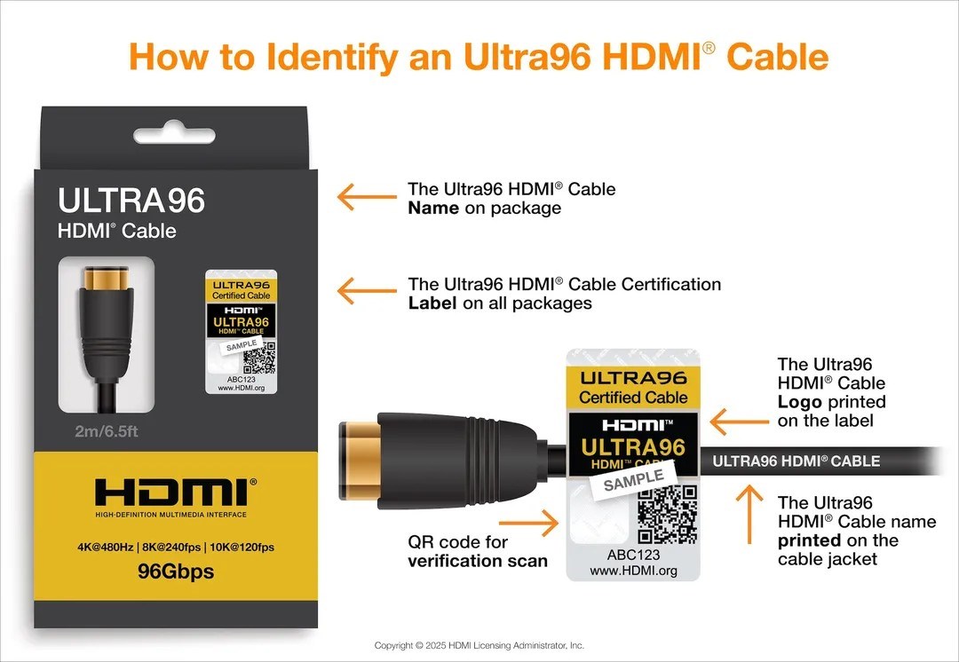 HDMI Forum, CES 2025 fuarında yeni HDMI 2.2 standardını duyurdu. Önceki sürümün iki katı bant genişliği (96 Gbps) sunan HDMI 2.2’nin özelliklerine erişebilmek için “Ultra96” sertifikalı yeni kabloların kullanılması gerekecek.