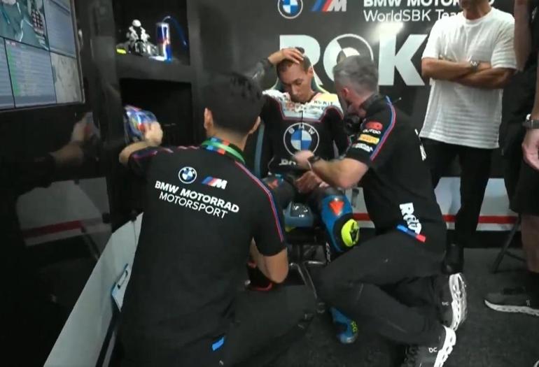 Yarışa veda eden Toprak Razgatlıoğlu, garaja döndükten sonra kaskını dolaba sert bir şekilde bırakarak ne kadar sinirli olduğunu gösterdi. Beş kez World Supersport şampiyonu Kenan Sofuoğlu ve Moto2 sürücüsü Deniz Öncü de o anlarda Toprak’ın yanındaydı.