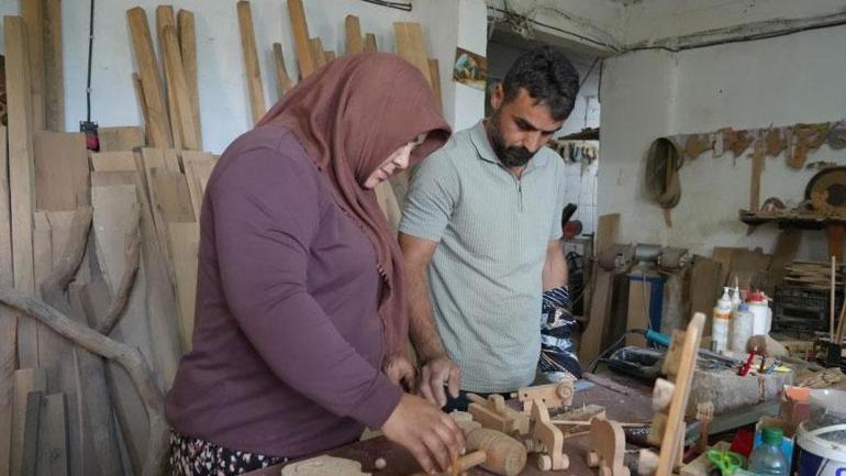 Eşi Nesrin Yazıcı ise, “Eşim bir kurs sayesinde hayata yeniden tutundu. Kaymakamlığın desteğiyle atölyemize makine aldık, üretimimizi büyüttük. Topaç en çok sattığımız ürün. Hatta Cumhurbaşkanlığı Külliyesi’ne de hediyemiz oldu. Tamamen doğal ve el yapımı oyuncaklar üretiyoruz. Hem çocuklarımız hem müşterilerimiz için doğallıktan vazgeçmiyoruz” ifadelerini kullandı.