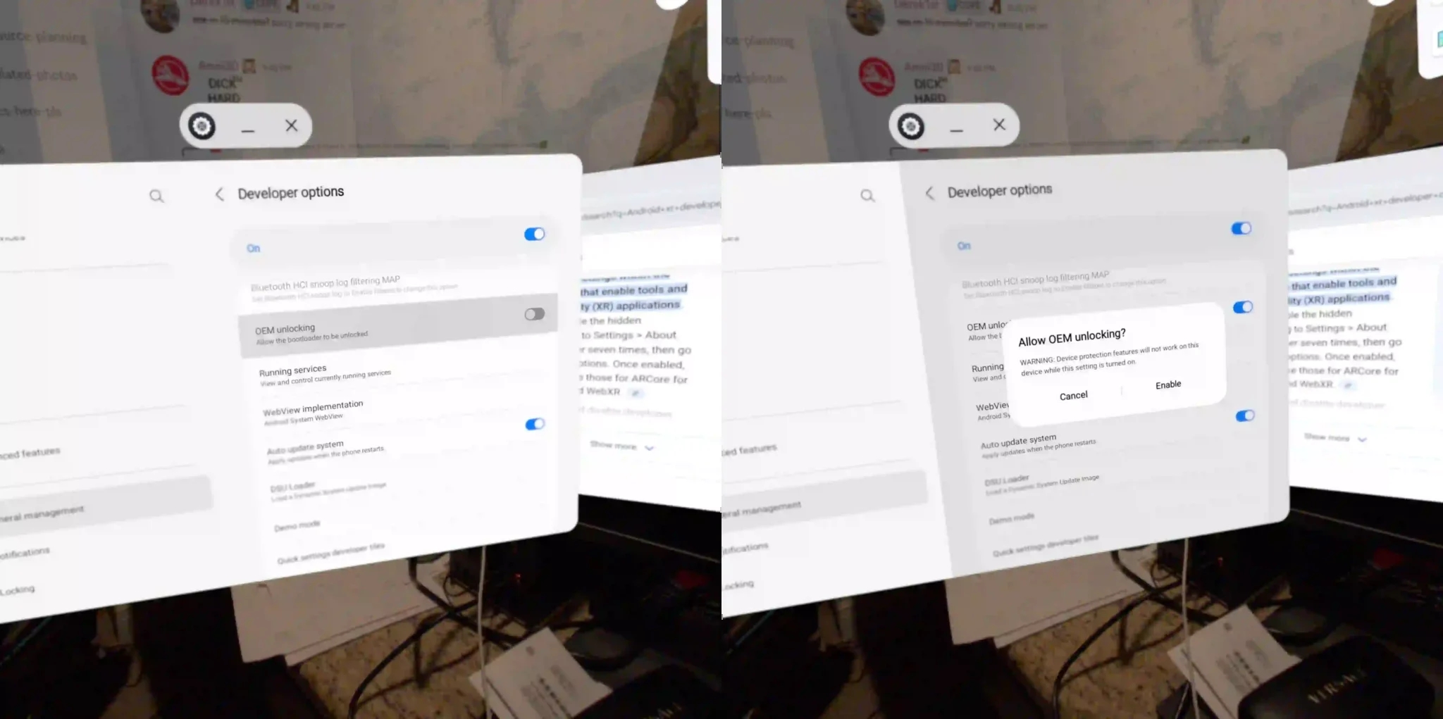 Bu, geliştiricilerin ve teknoloji meraklılarının sevdiği bir özellik çünkü; denemeler ve modifikasyonlar için kapı açıyor. One UI 8 güncellemesiyle Samsung telefon ve tabletlerde bootloader kilidini açma seçeneği kaldırılırken, Galaxy XR’da bunu yapmak için Geliştirici Seçenekleri’nde “OEM kilidini açma” altında çalışan bir seçenek bulunuyor.