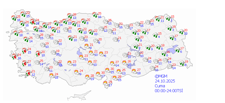 İstanbul’da, havanın parçalı ve çok bulutlu olması, yağışın aralıklı sağanak ve gök gürültülü sağanak şeklinde görülmesi bekleniyor. Hava sıcaklığının ise 23 ila 24 derece civarında olacağı tahmin ediliyor.