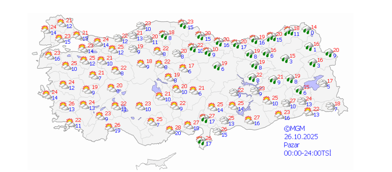 Pazar günü ise yağışların doğuya doğru hareket etmesi, Doğu Karadeniz ve Batı Karadeniz kıyılarında sağanak, Doğu Anadolu’nun kuzeyinde ise yağmur şeklinde görüleceği bekleniyor.
