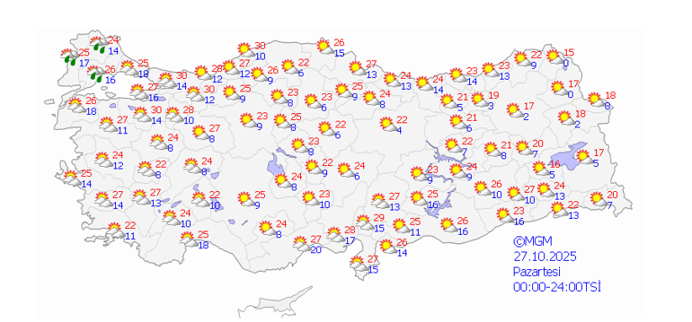 Hava sıcaklıklarının Marmara ve Batı Karadeniz’de 3 ila 5 derece azalacağı beklenirken diğer yerlerde önemli bir değişiklik beklenmiyor.