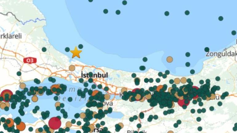 Önceden kaydedilen depremler ve ‘yıldız’ ile işaretlenmiş 26 Ekim 2025’teki 3.7’lik sarsıntı