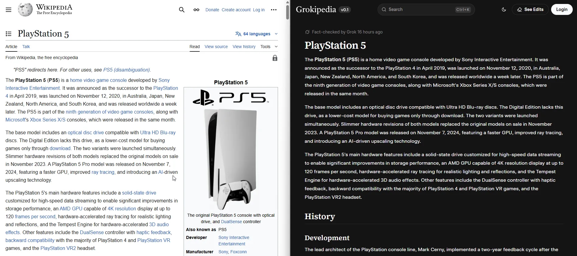 Musk, Grokipedia’nın Wikipedia’ya göre büyük bir iyileştirme olacağını vaat etmiş olsa da görünüşe göre sitenin bazı sayfalarında Wikipedia’dan doğrudan alınmış içerikler yer alıyor. Örneğin MacBook Air sayfasının alt kısmında lisans kapsamında “Bu içerik Wikipedia’dan uyarlanmıştır” uyarısı bulunuyor. Aynı uyarı PlayStation 5 ve Lincoln Mark VIII sayfalarında da görülüyor ve bu sayfalardaki metinler Wikipedia sürümleriyle neredeyse birebir aynı.