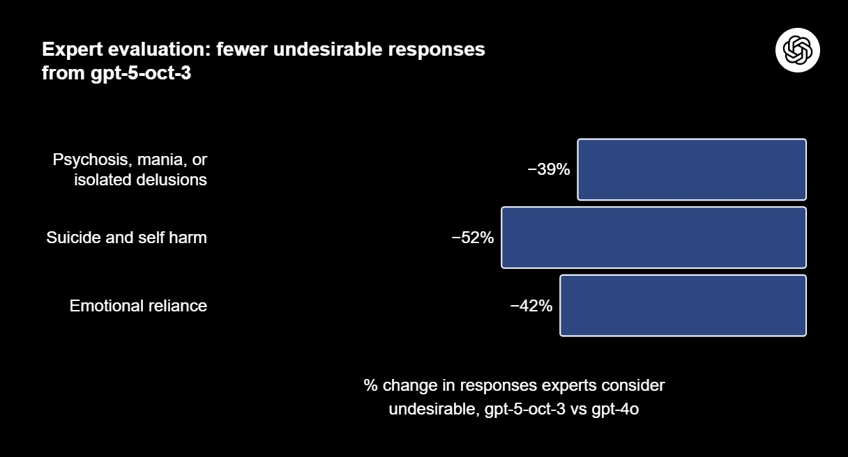 Yeni modelin kullanıcı güvenliğini artırmak için kriz müdahale hattı erişimi genişletildi ve uzun sohbetler sırasında kullanıcılara ara vermeleri hatırlatıldı. Bu iyileştirmeler, 170 klinik uzmanın desteğiyle gerçekleştirildi. Uzmanlar, modelin yanıtlarının güvenliğini değerlendirdi, ruh sağlığıyla ilgili sorulara uygun cevapların oluşturulmasına katkı sağladı ve ciddi ruh sağlığı durumlarını kapsayan 1.800’den fazla yanıtı inceledi. Ruh sağlığı konuları, OpenAI için giderek varoluşsal bir mesele haline geliyor. Şirket, intihar düşüncelerini ChatGPT ile paylaşan 16 yaşındaki bir gencin ailesi tarafından dava edilmiş durumda.