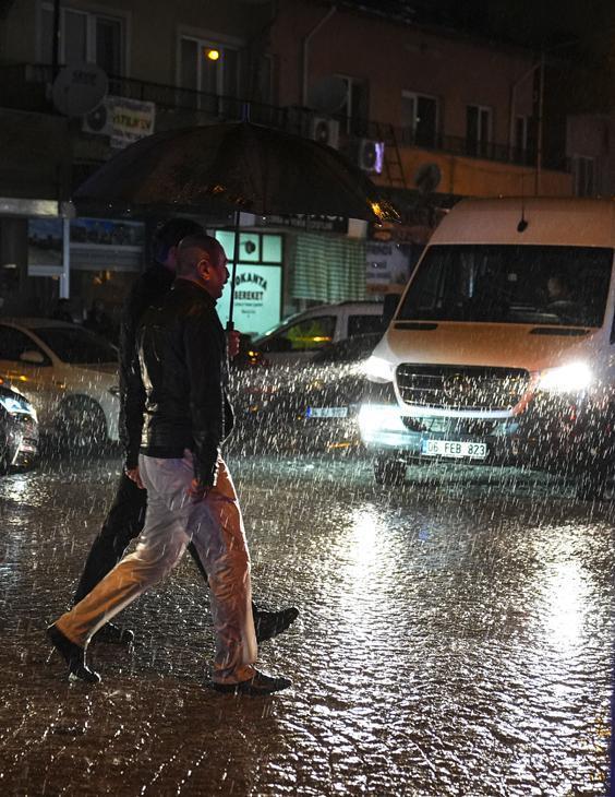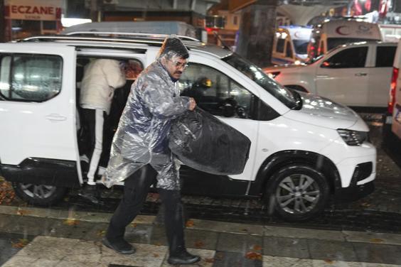 Deprem korkusu nedeniyle dışarıda bulunan vatandaşlar, sağanaktan korunmak için kafe ve restoran gibi işletmelere sığındı.