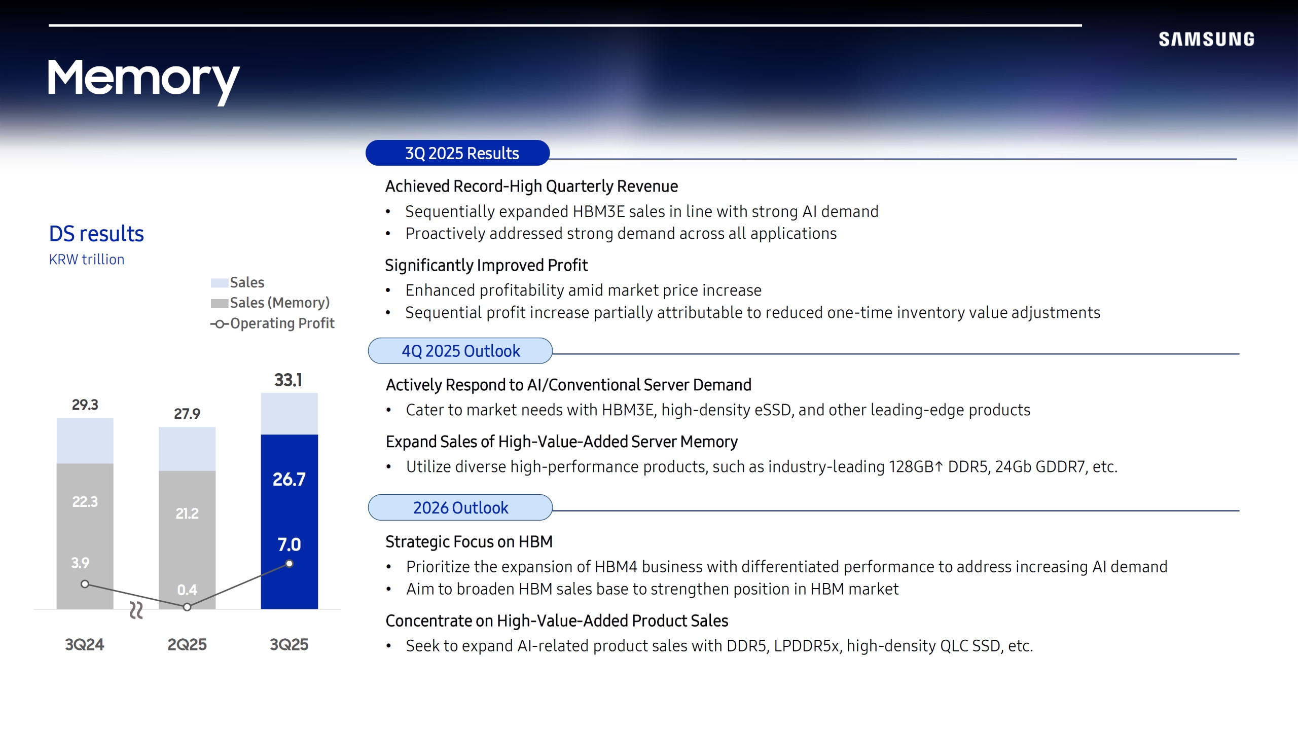 Samsung, üçüncü çeyrek mali raporuyla birlikte yeni nesil bellek planlarını duyurdu. Şirket, HBM4 belleklerin 2026 yılında seri üretime gireceğini, ayrıca 24Gb GDDR7 DRAM ve 128GB üzeri DDR5 modüller üzerinde de çalıştığını açıkladı. 2nm GAA üretim süreci de bu dönemde tam kapasiteye ulaşacak.