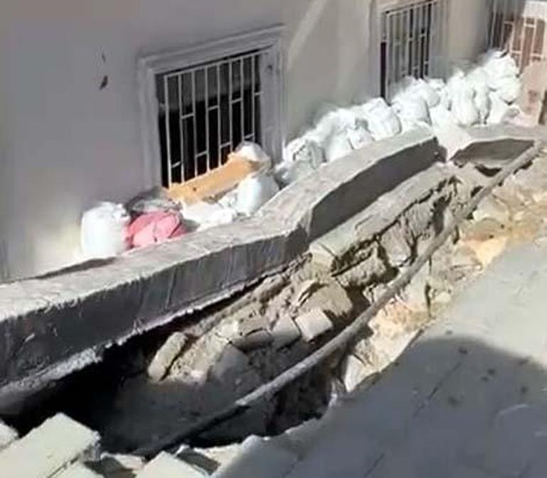 Kaldırımın yanında yolda park edilen bir motosiklet de moloz yığınının altında kaldı.