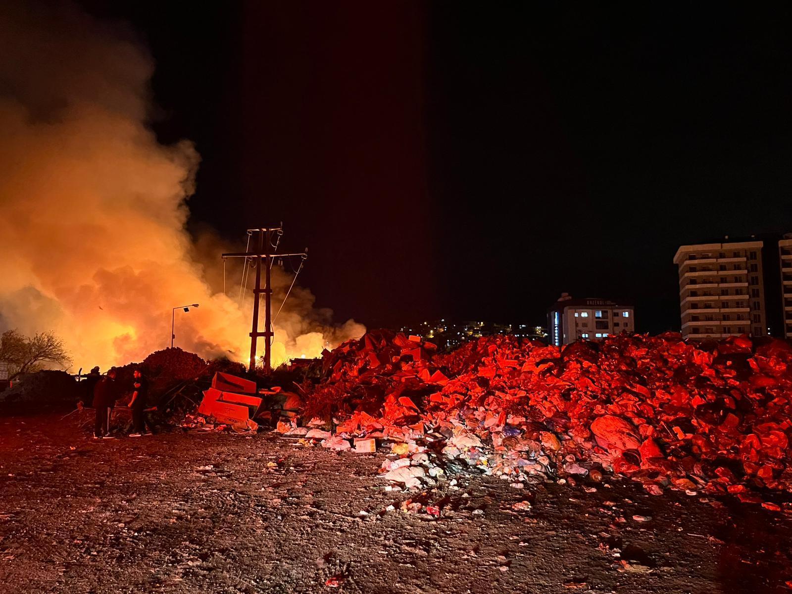 Evsel atıkların yanı sıra, plastik ve ahşap malzemelerin de bulunduğu alandaki yangın, rüzgarın etkisiyle büyüdü. Ekipler, yangını kontrol altına almak için çalışmalarını sürdürüyor.
