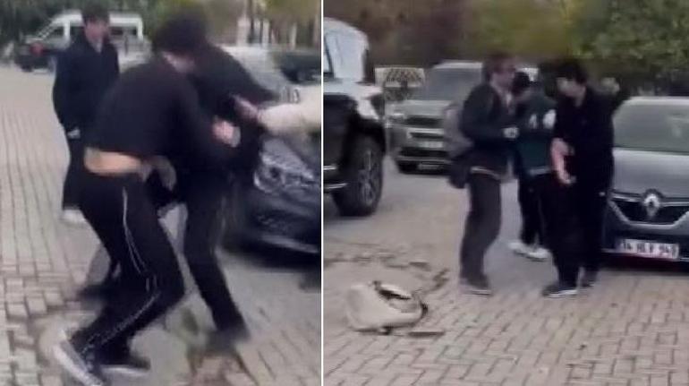 Öğrencilerin okul önünde kavga etmesi ve bir öğrencinin kolundan bıçaklanma anı cep telefonu kamerasına saniye saniye yansıdı.