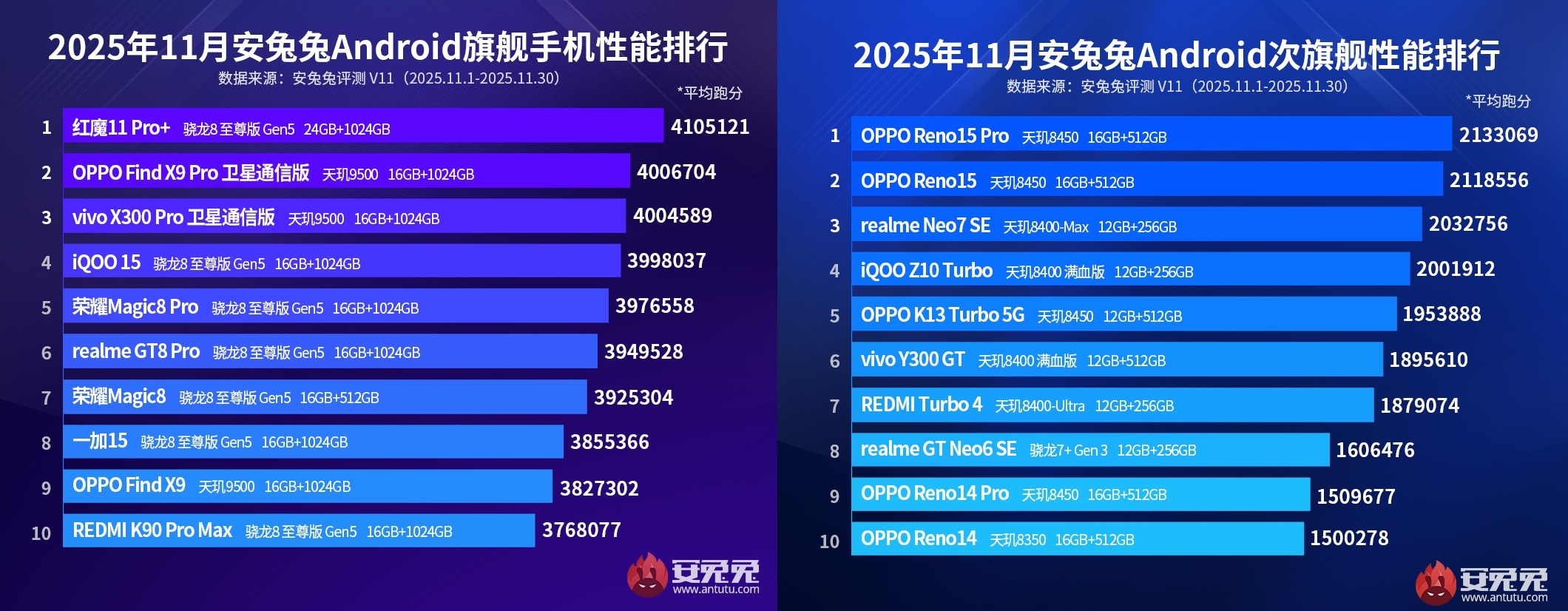 Akıllı telefon performans testleriyle tanınan AnTuTu, Kasım 2025’in en güçlü Android cihazlarını açıkladı. 1-30 Kasım tarihleri arasında toplanan verilere göre, Red Magic 11 Pro+ amiral gemisi sınıfında zirveye yerleşti. Peki, amiral gemisi ve orta segment telefonlar arasında hangi modeller öne çıktı? Gelin, Kasım ayının en güçlü Android telefonlarına birlikte bakalım.