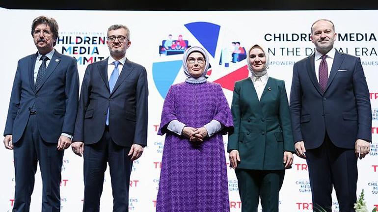 Emine Erdoğan, Haliç Kongre Merkezi’nde “Dijital Çağda Çocuk Medyası: Aileyi Güçlendirmek, Değerler İnşa Etmek” başlığıyla düzenlenen TRT Uluslararası Çocuk Medyası Zirvesi’ne katıldı.