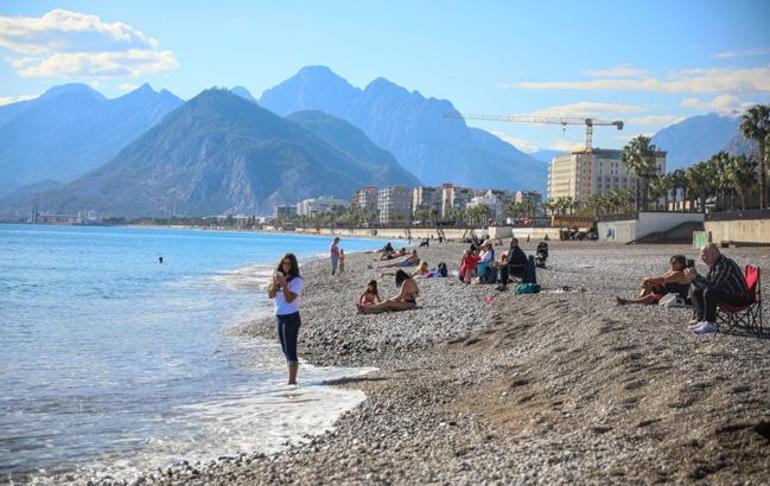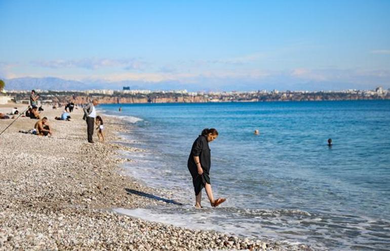 Hava sıcaklığının 22 dereceyi gördüğü kentte yaşayanlar, güneşli havayı görünce Konyaaltı Sahili’ne geldi. Sahile gelenlerin bazıları, sıcaklığı 21 derece olan denize girdi.