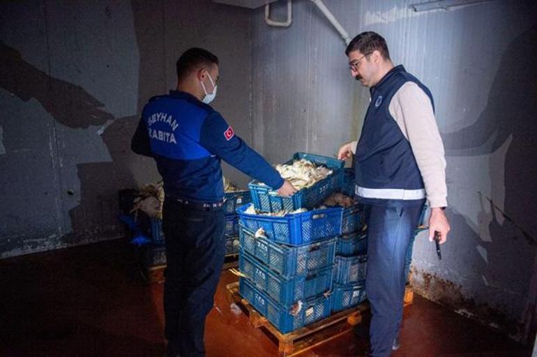 Öte yandan Adana’da ihbar üzerine bir depoya yapılan baskında ele geçirilen kokmuş 25 kasa tavuk imha edildi.