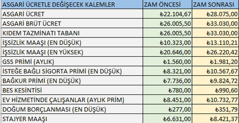 Asgari ücrete zam sonrası değişen ödeme ve ücretler! Kıdem tazminatı tabanı, işsizlik maaşı, GSS primi, askerlik ve doğum borçlanması, stajyer maaşı…
