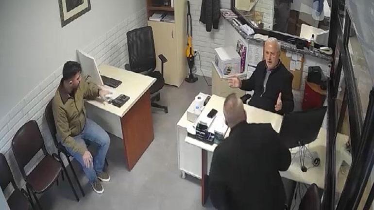 Burada iki kişi Naim G.’nin odasına gelerek, oğlunun Mahmut E. ile ticaret yaptığını ve kendisinden alacağı olduğunu iddia etti. Naim G. ise oğluyla yaklaşık 10 yıldır görüşmediğini söyleyerek oğlunun borcunun kendisini ilgilendirmediğini ifade etti. Bu cevap sonrasında sinirlenen 2 kişiyle Naim G. arasında tartışma çıktı. Tartışmada şüpheli 2 kişi Naim G.’yi ‘Bu işi başka şekilde halledeceğiz’ diyerek tehdit ettikten sonra iş yerinden ayrıldı. Yaşananlar güvenlik kamerasına saniye saniye yansıdı.