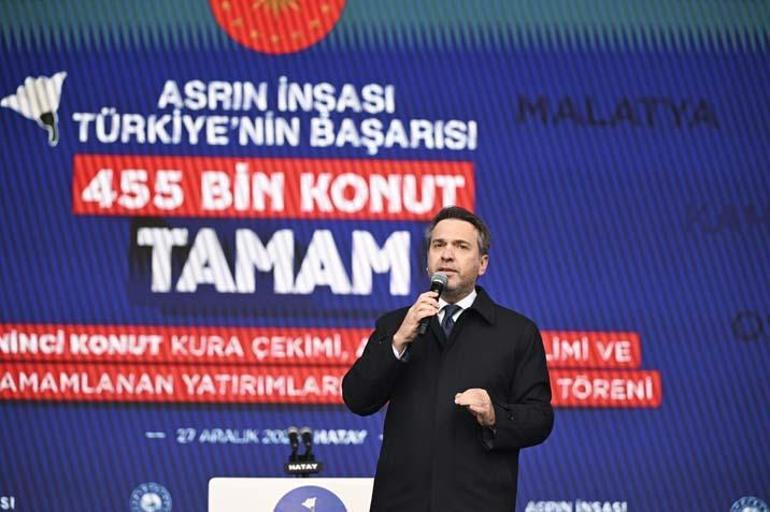 Bayraktar, deprem bölgesinde 455 bininci konuta ulaştıklarını belirterek, “Allah’a hamdolsun çok kısa, dünyada rekor sayılabilecek bir süre içerisinde millet olarak bir arada güçlü devlet, liderlik ve Cumhurbaşkanı’mızın riyasetinde bu eserleri inşa ediyoruz. Hatay bugün bambaşka güzel.” ifadelerini kullandı.