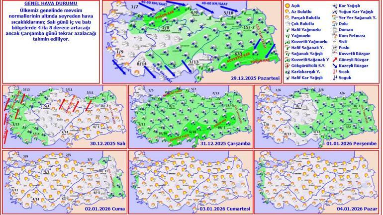 HAVA SICAKLIĞI: Hava sıcaklığının, hissedilir derecede azalarak ülke genelinde mevsim normallerinin altında seyretmesi bekleniyor.