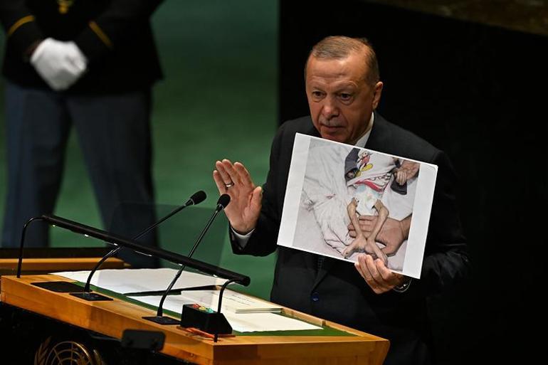 Cumhurbaşkanı Erdoğan, konuşmasında, İsrail’in 2 yıldır soykırım ve etnik temizlik suçları işlediği Gazze Şeridi’ndeki insani felaketi belgeleyen fotoğrafları gösterdi. Erdoğan’ın paylaştığı fotoğraflarda, AA için çalışan Ali Jadallah ve Abdullah el-Attar’ın zorlu şartlar altında çektiği kareler de yer aldı.