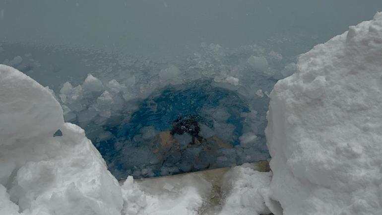 Bolu Dağı’nda bir otelde yılbaşı tatili için konaklayan Eren Biri, eksi 10 derece havada buz gibi suya girdi.
