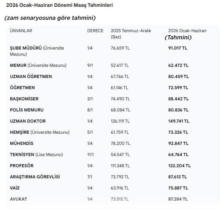 Eğer maaşlara %18.70 oranında zam olursa en düşük memur emeklisinin maaşı ocakta 31.660 TL olur. En düşük bekar memur maaşın 55.443 TL, en düşük evli bir memurun maaşı da 59.946 TL seviyesine yükselir.”
