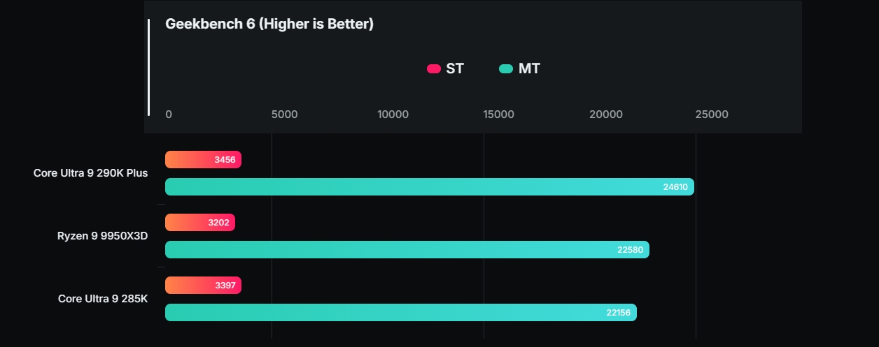 Geekbench sonuçlarında Core Ultra 9 290K Plus, tek çekirdekte 3.456, çoklu çekirdekte ise 24.610 puan alıyor. Bu değerler, 285K’ya kıyasla tek çekirdekte yaklaşık yüzde 7, çoklu çekirdekte ise yüzde 9’luk bir artış anlamına geliyor. AMD Ryzen 9 9950X3D ile kıyaslandığında ise Intel’in yeni modeli tek çekirdekte yüzde 2, çoklu çekirdekte yüzde 11 daha yüksek skor elde ediyor. Tabii ki pyun performansı tarafında büyük bir sıçrama beklenmiyor. Keza 3D V-Cache’e sahip Ryzen modellerinin bu alanda büyük bir avantaja sahip olduğunu söyleyelim. Buna karşın Core Ultra 9 290K Plus, çoklu çekirdek odaklı iş yüklerinde Arrow Lake Refresh ailesinin en güçlü seçeneği olarak konumlanacak.