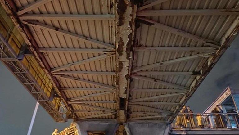 Bugün ise üst geçidin alt kısmının tamamına yakınının paslı olduğu, bazı kısımlarda ise demirlerin çıktığı görülüyor.