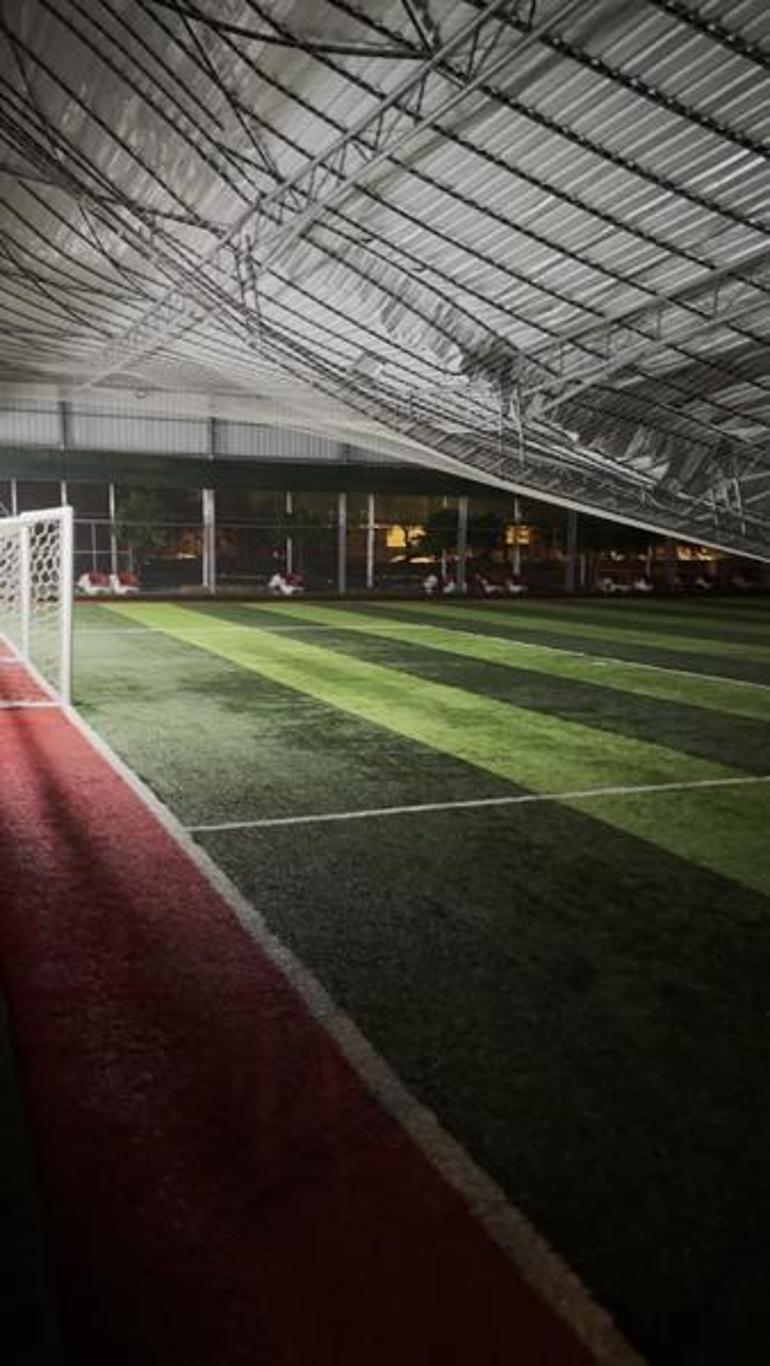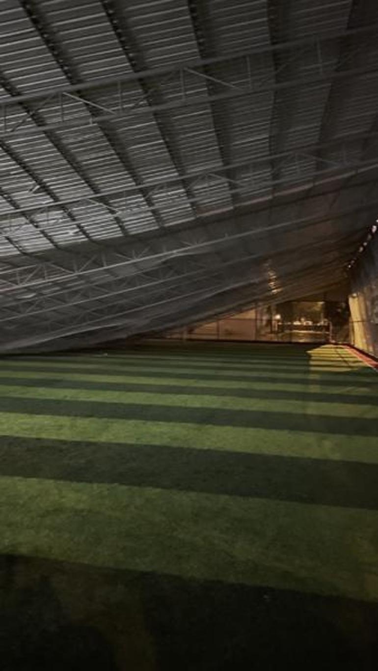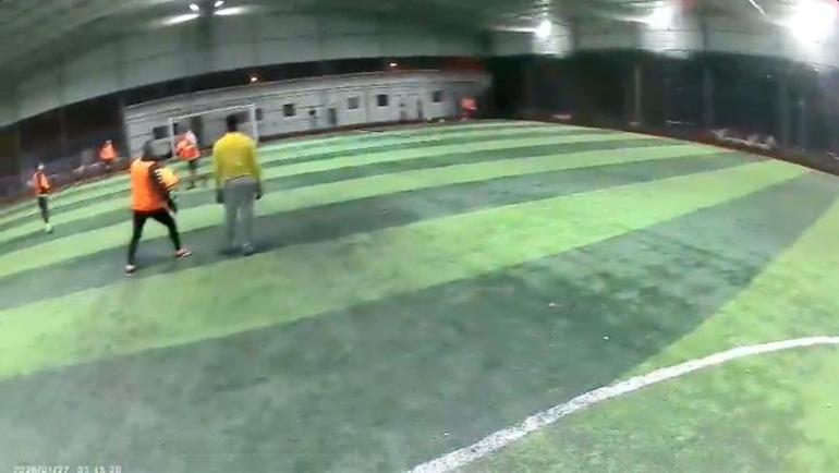 Saha hakkında konuşan futbolcular biranda gelen gürültüyle sahadan koşarak kaçarken, sahayı terk ettikleri anda çatıda çökme yaşandı. O anlar oyunculardan birinin aksiyon kamerasına saniye saniye yansıdı.