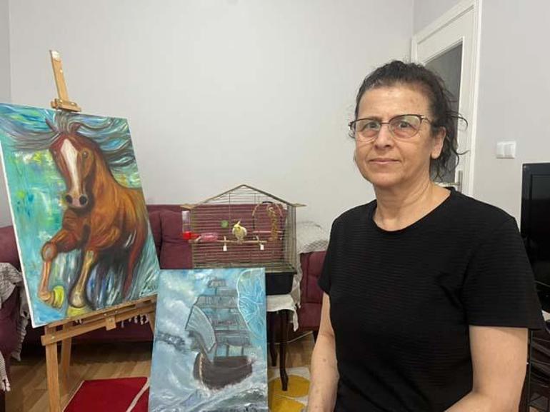 Hatay depremine resim yaparken yakalanan ve asrın felaketinde komşularını kaybeden, felaketin ardından Eskişehir’de göç eden 50 yaşındaki ressam Ayten Cömert, “Depreme resim yaparken yakalandım. O resim fırçası beni hayata bağladı diyebilirim” dedi.