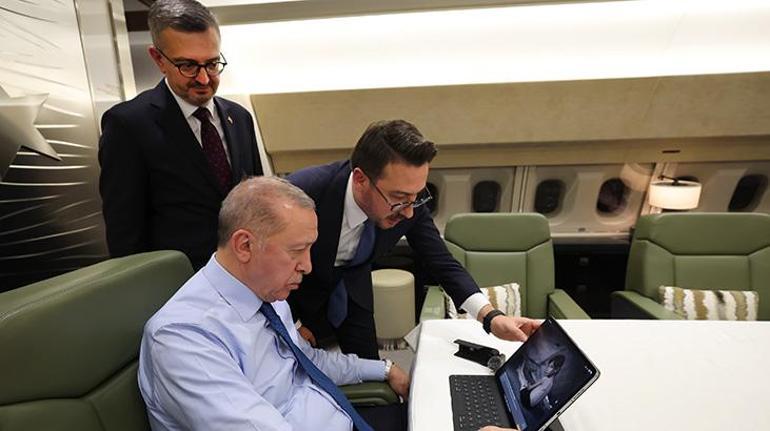 Cumhurbaşkanı Erdoğan, lifebox, AJet ve ROKETSAN sponsorluğunda düzenlenen yarışmada, AA foto muhabirleri ve muhabirlerinin 2025’te Türkiye ile dünya gündeminde yankı bulan 6 kategorideki 112 fotoğrafını Mısır ziyareti dönüşü uçakta inceledi