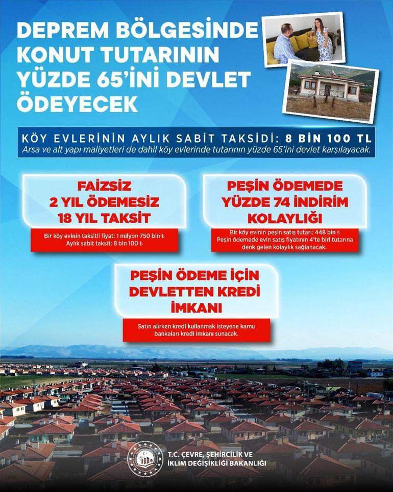 KÖY EVLERİNİN AYLIK SABİT TAKSİDİ: 8 BİN 100 TL OLACAK