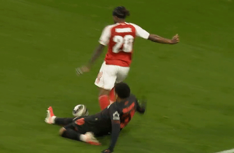 Karşılaşmanın son bölümünde Arsenal atağında Noni Madueke sağ çaprazdan ceza sahasına girdi. Madueke, Alejandro Grimaldo’nun müdahalesi sonrası yerde kalırken Halil Umut Meler penaltı kararı verdi.