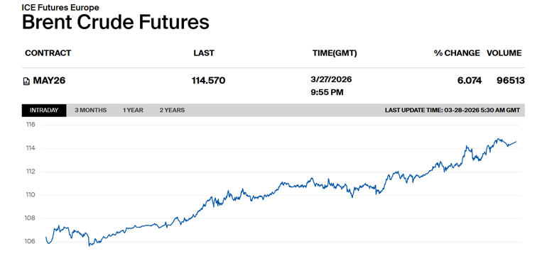 Brent petrolün varil fiyatı yüzde 6,3 artarak 114 doların üzerine çıktı. Böylece fiyatlar, Haziran 2022’den bu yana ( 45 ay) en yüksek seviyesine ulaşmış oldu. Batı Teksas türü ham petrol (WTI) de yüzde 6,2 yükselerek 100 dolar eşiğini geçti.